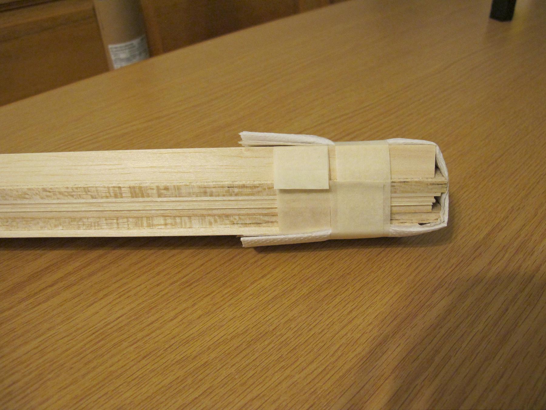 This detail impressed me – Tape folded over in a tab to easily remove the shipping balsa tapers. Every tape strip is like this. Nick Aikman’s attention to detail is quite impressive.