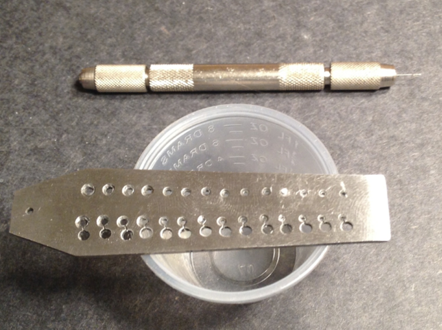 The smallest diameter machinable aluminum rods I have been able to find to date are from K & S Engineering. They can be found at most local hobby shops in the U.S. and online from various sources. I buy the 1.6mm/0.0625” rods because next size down are too small at 0.8mm/0.03125”. There are three ways that I know of to reduce the rod diameter to the 1mm/0.0395”diameter required for threading. The rod can be drawn, turned or my personal favorite, abraded, to appropriate diameter. I do not have a lathe, and my draw plate is imprecise, so I use the abrasion method described below.
