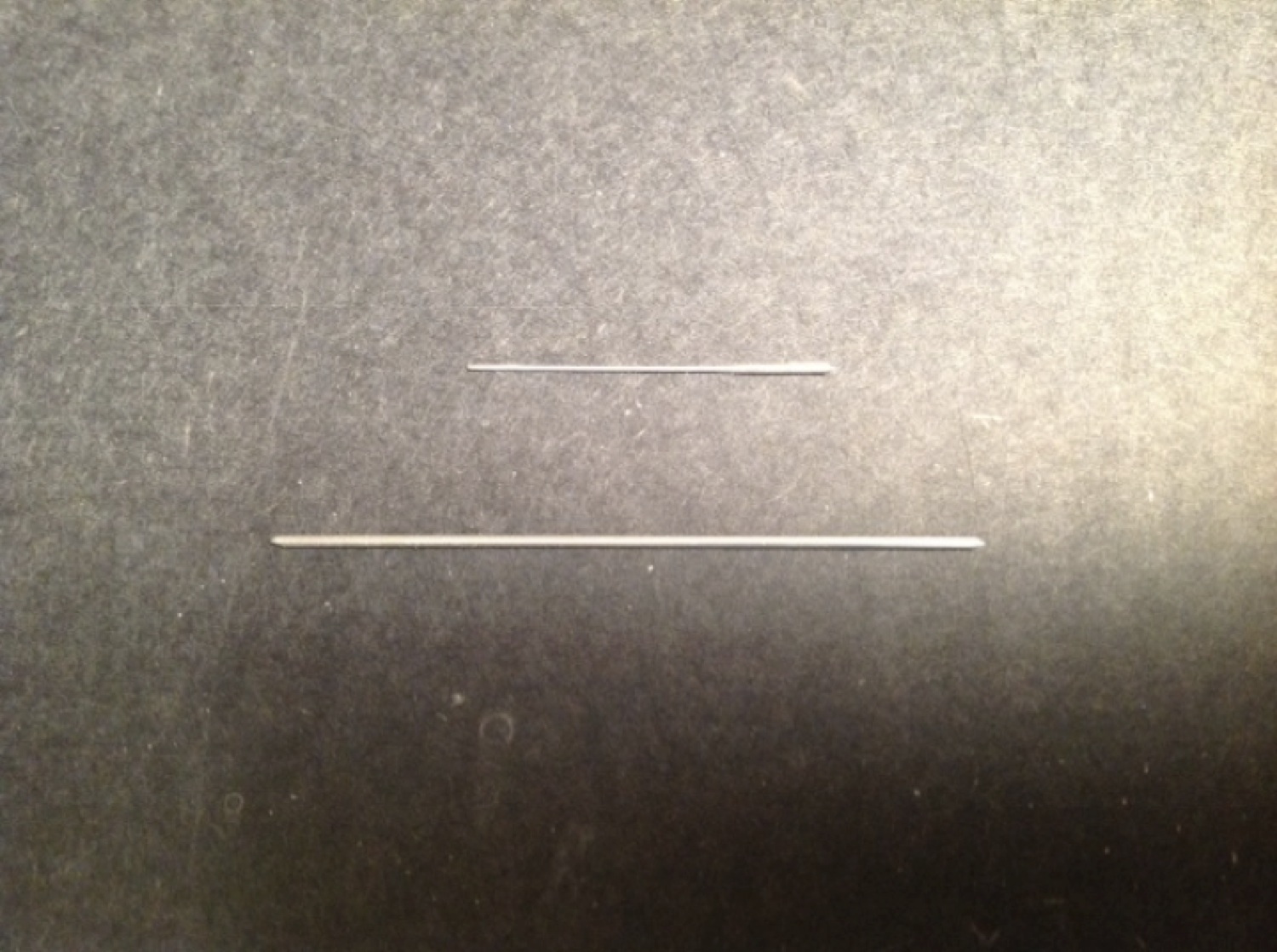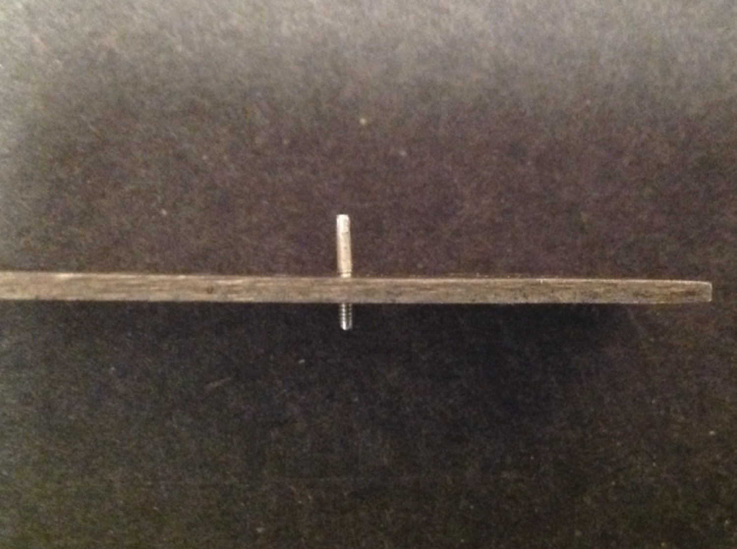 After what will become the head of the screw has been filed satisfactorily smooth, visually divide the top of rod into two equal parts. Use a single edge razor blade to score the top of the rod in the middle. This score mark will guide the saw when starting to cut the slot in the head of the screw. If your score mark is not perfectly centered then polish it away and try again. I make the heads of my screws first so that I do not have to worry as much about my screw coming out too short if it takes more than one try to get this step correct.