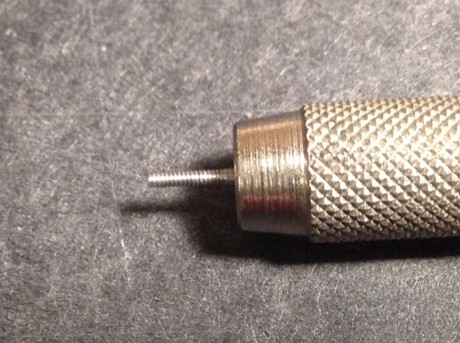 To begin the screw head slotting process, finger thread the rod back into the die. If you have something else that is tapped to match your screw you can use that as a screw holder for this part of the process as well.