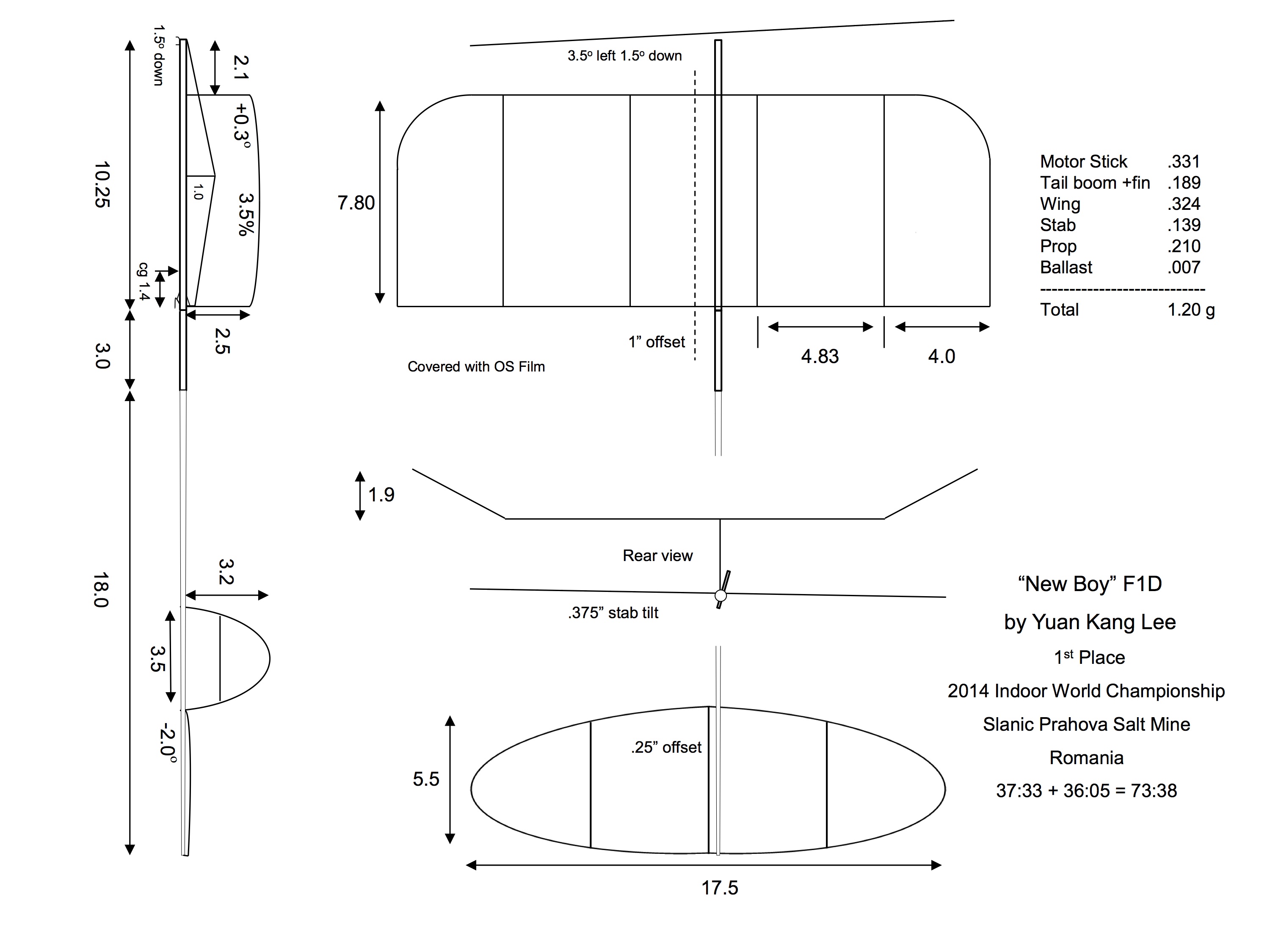 19:39 is my personal best in F1L. The design of the model is about the same as a paper-covered EZB my son and I built in the early 1980s. It weighed 0.050oz, but was a good, reliable flyer. My F1L is a little over 0.042oz.