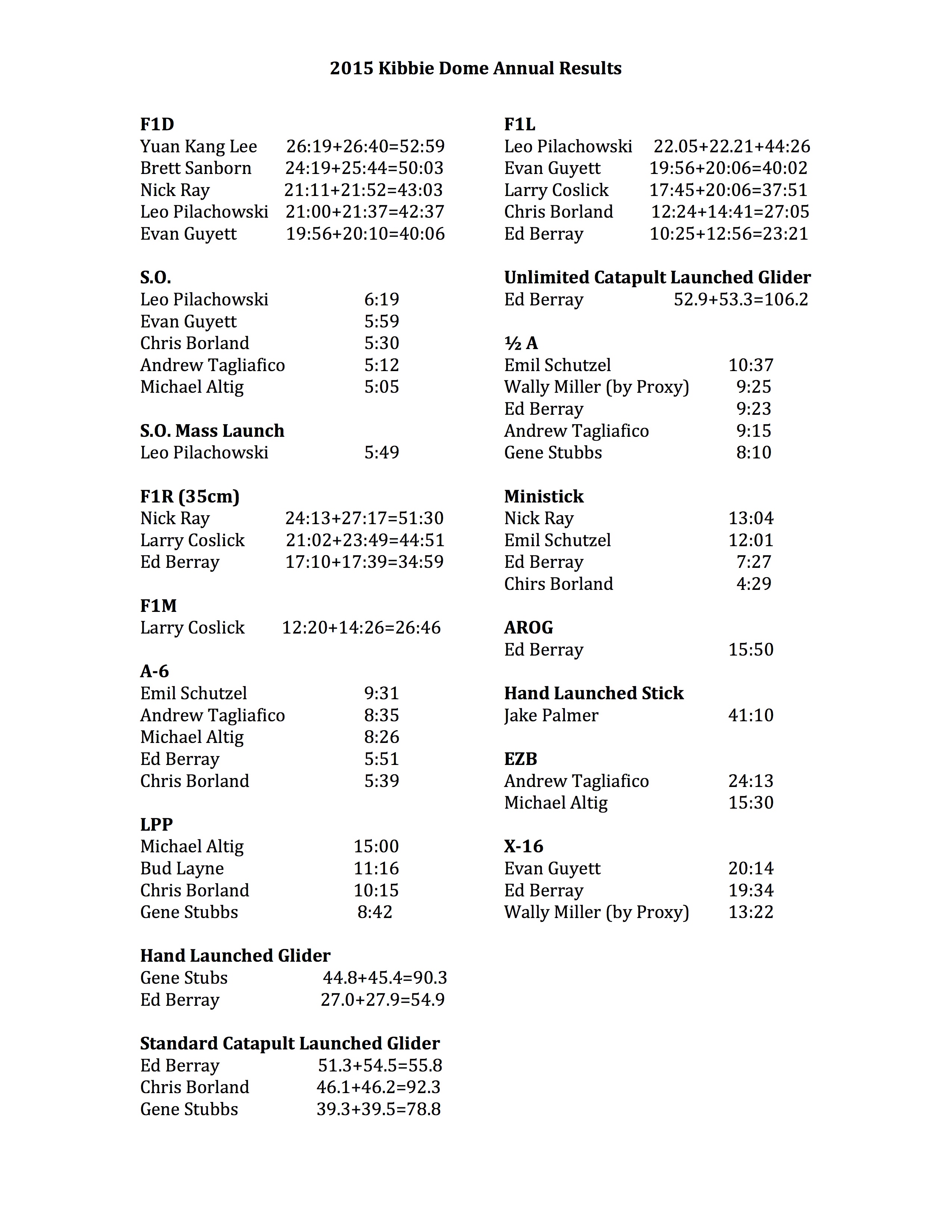 Contestants enjoyed another smoothly run contest thanks to CD Andrew Tagliafico. The contest spanned 5 days in the 147ft tall site. The highlights included Jake Palmer joining the 40 Minute Club and AMA National Records being established in F1D and F1R.