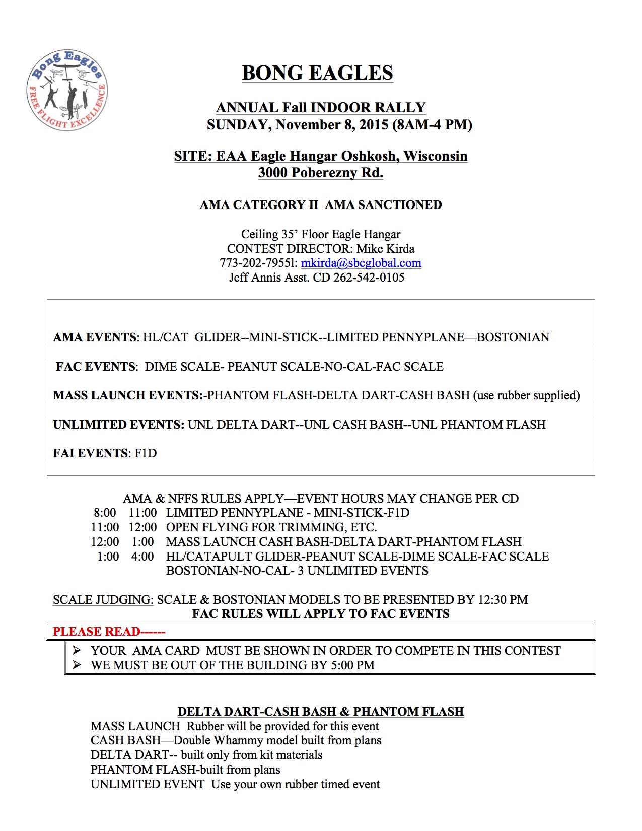 Cost: Contingent on number of flyers – Rental cost is $300, plus AMA costs.