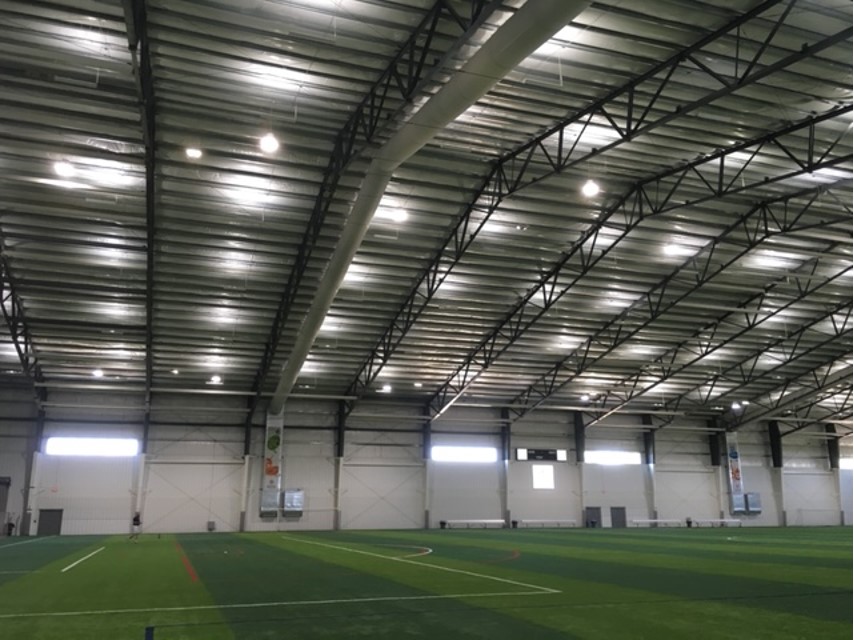 The site is an outstanding venue for Indoor Free Flight. It has a 72 foot ceiling with 66 feet to the bottom of the girders. Floor area is an impressive 80 by 125 yards; a full sized regulation soccer field with a runoff.