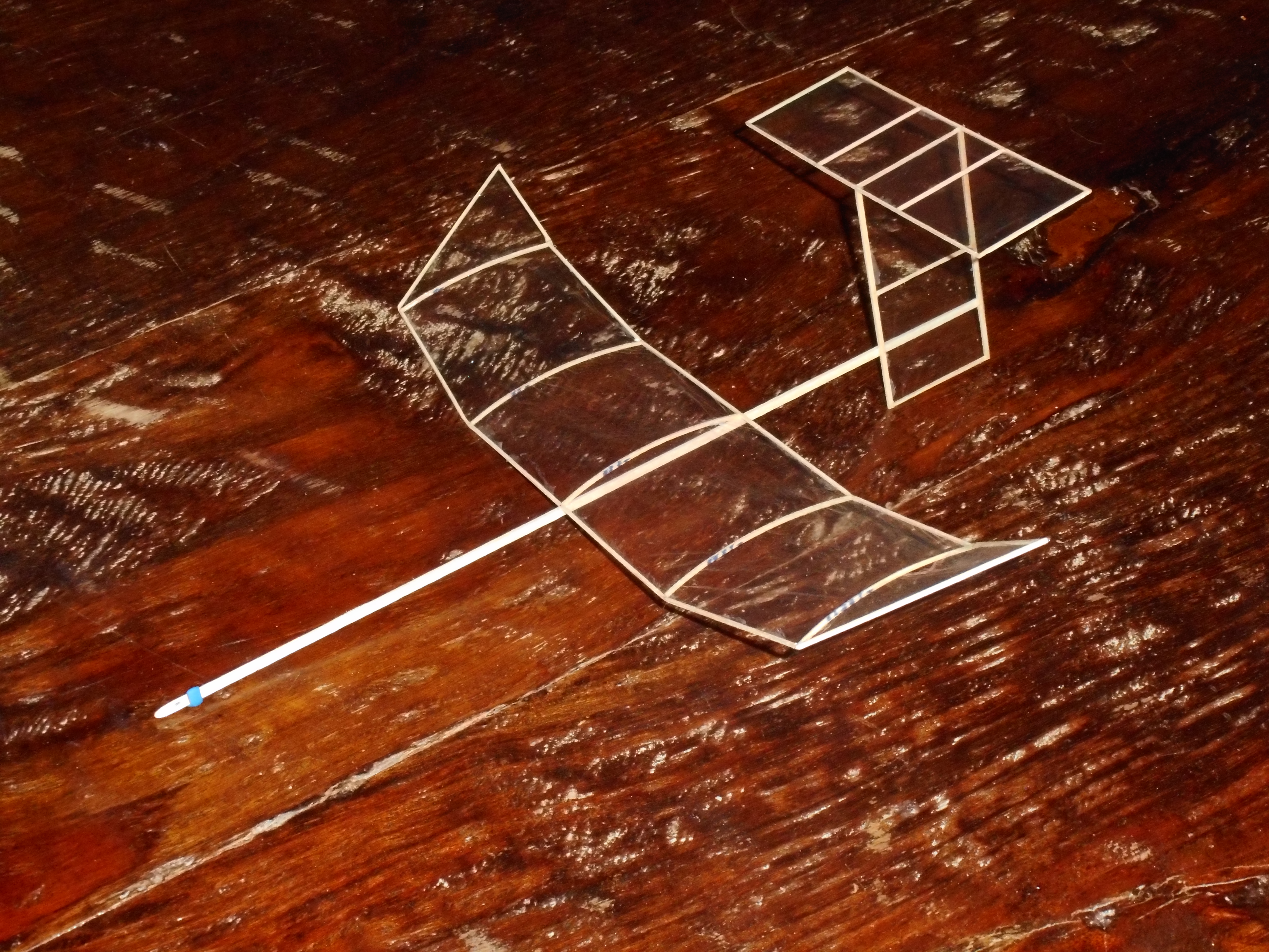 Build the Hallway Harrier just like any small Indoor FF model – ministick, parlor mite, Scraps, etc. Main construction material is 1/32” square.